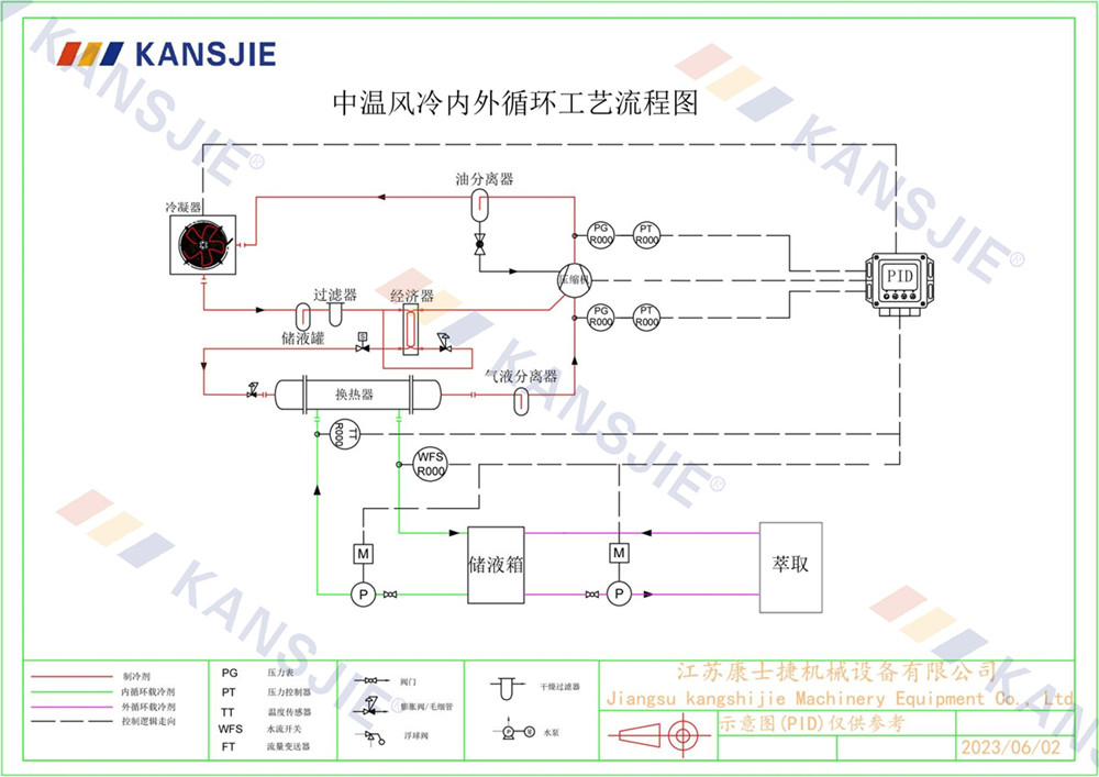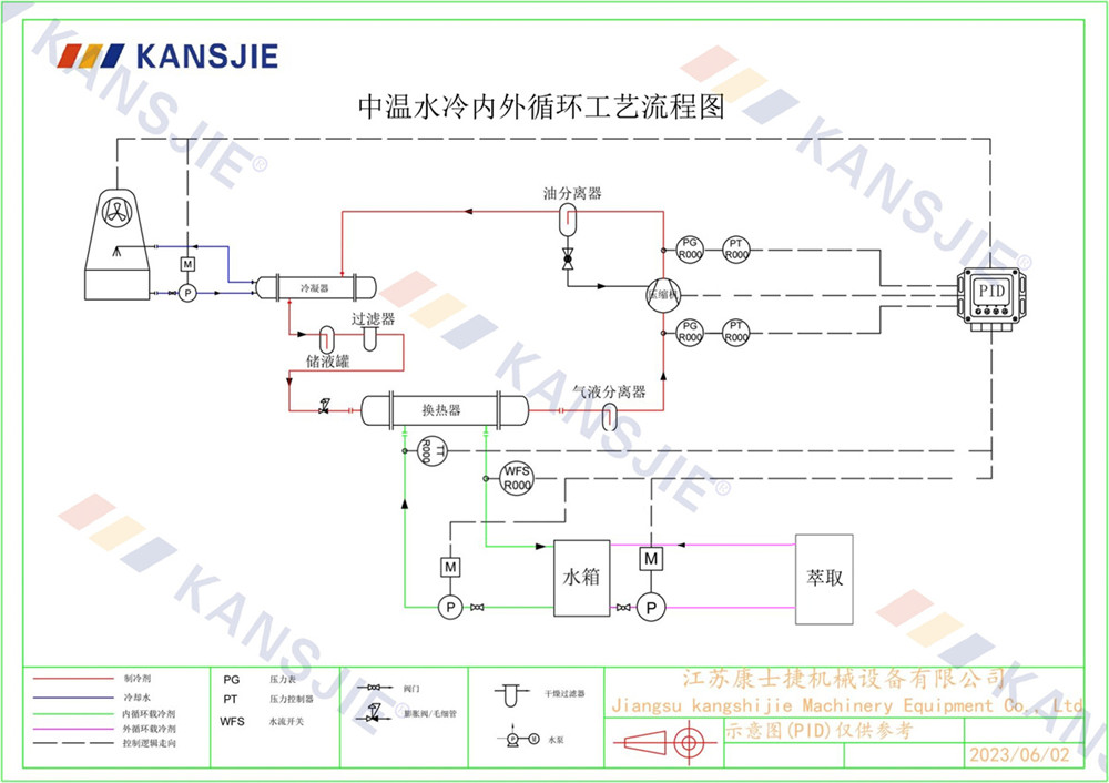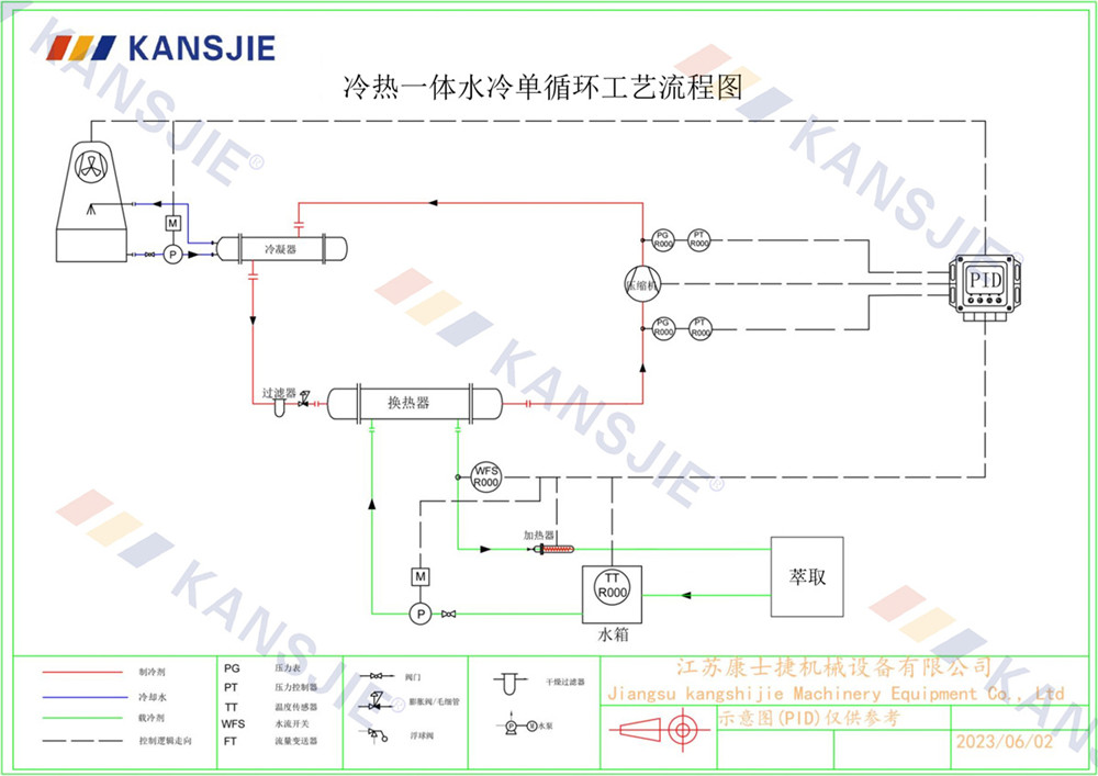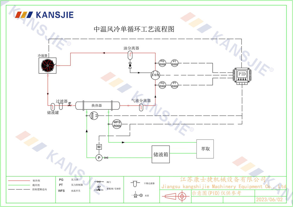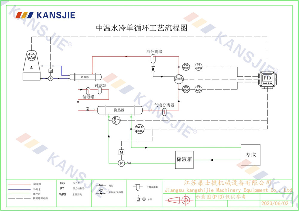 在萃取冷卻工藝中冷水機(jī)的作用主要是通過(guò)將熱量從反應(yīng)物中轉(zhuǎn)移出來(lái),以達(dá)到控制反應(yīng)溫度的目的。使用冷水機(jī)可以提供穩(wěn)定的低溫冷凍水,將反應(yīng)過(guò)程中產(chǎn)生的熱量迅速帶走,從而有效地控制反應(yīng)溫度,避免溫度過(guò)高對(duì)反應(yīng)產(chǎn)生負(fù)面影響。同時(shí),冷水機(jī)還可以提高冷卻效率,減少能耗為工業(yè)化生產(chǎn)提供更穩(wěn)定、高效的條件。