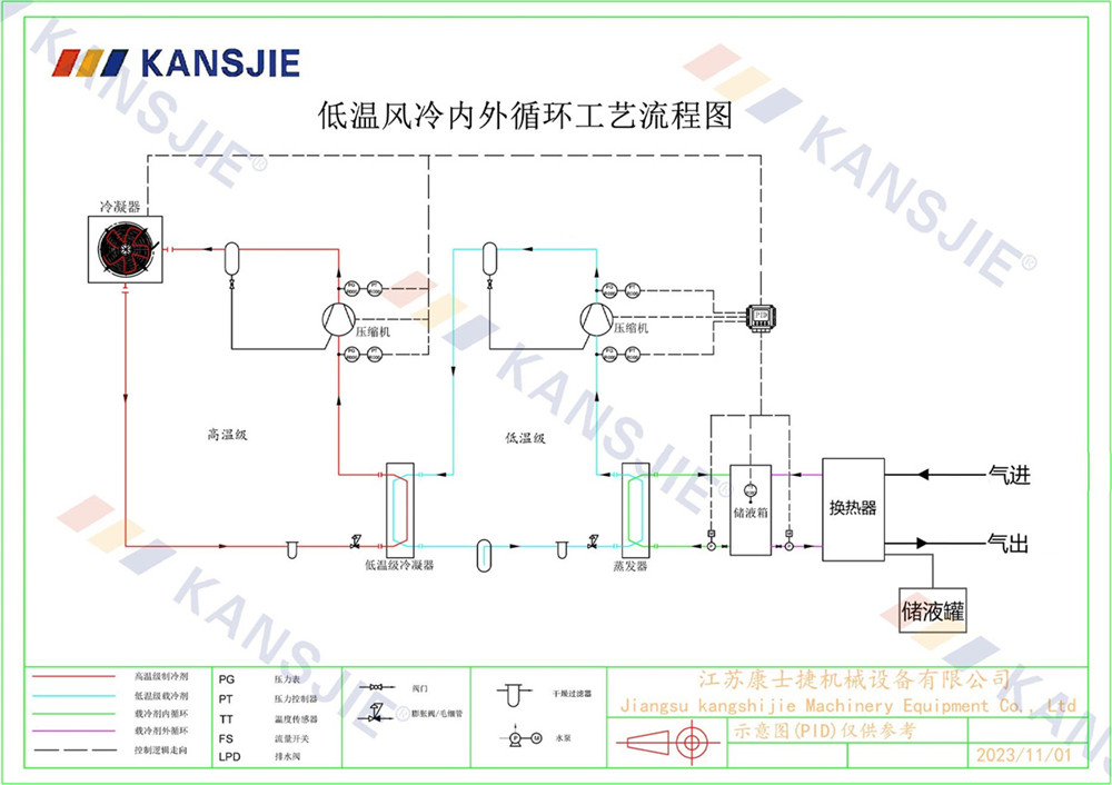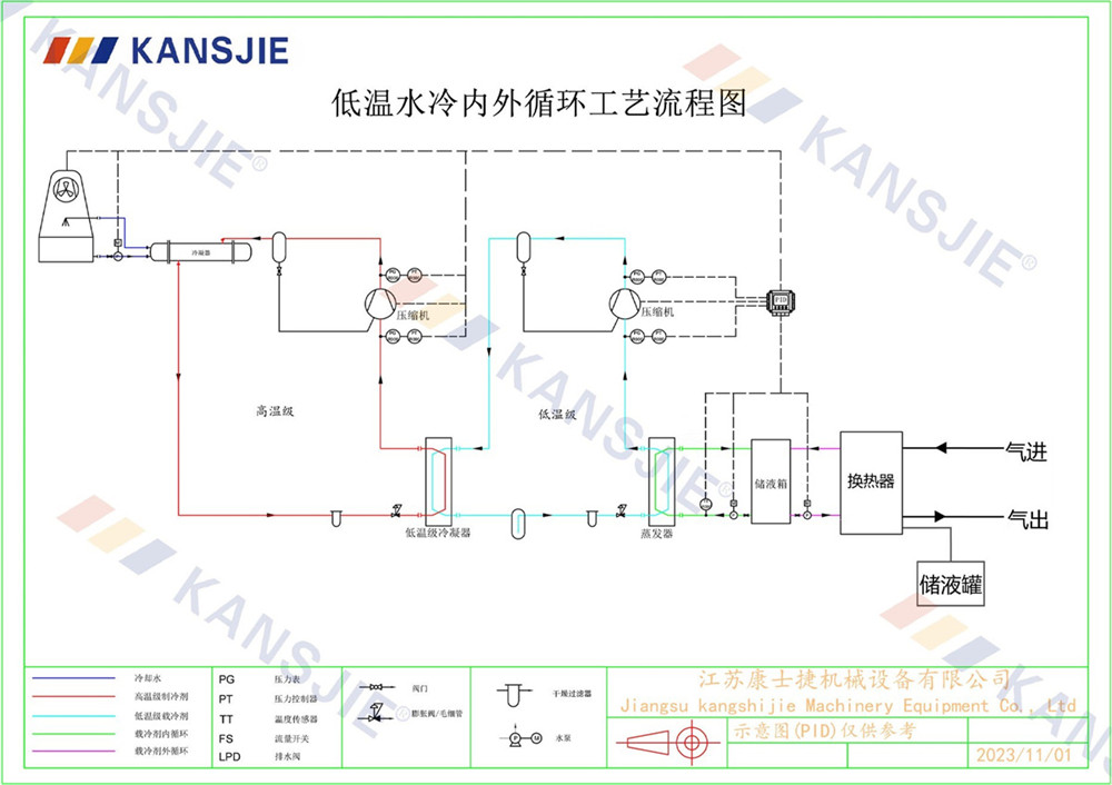 冷凝器是冷水機進行尾氣冷凝回收工藝的核心部件,冷凝器的設(shè)計需要考慮到尾氣的成分、流量以及所需的冷凝溫度等因素。一般來說冷凝器采用翅片式或套管式結(jié)構(gòu),通過增強換熱面積來提高冷凝效率。同時,為了確保冷凝器的正常運行,需要定期進行清洗和維護。